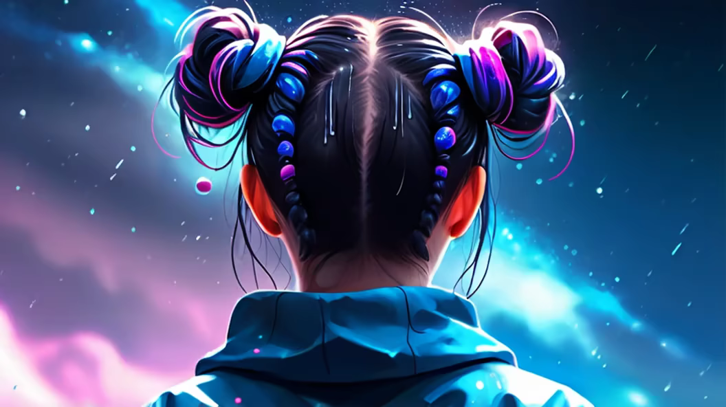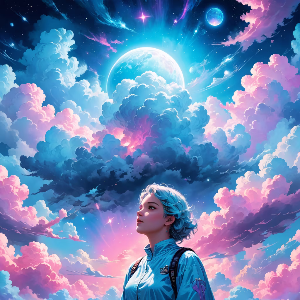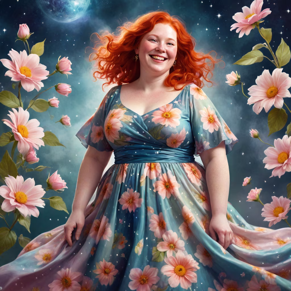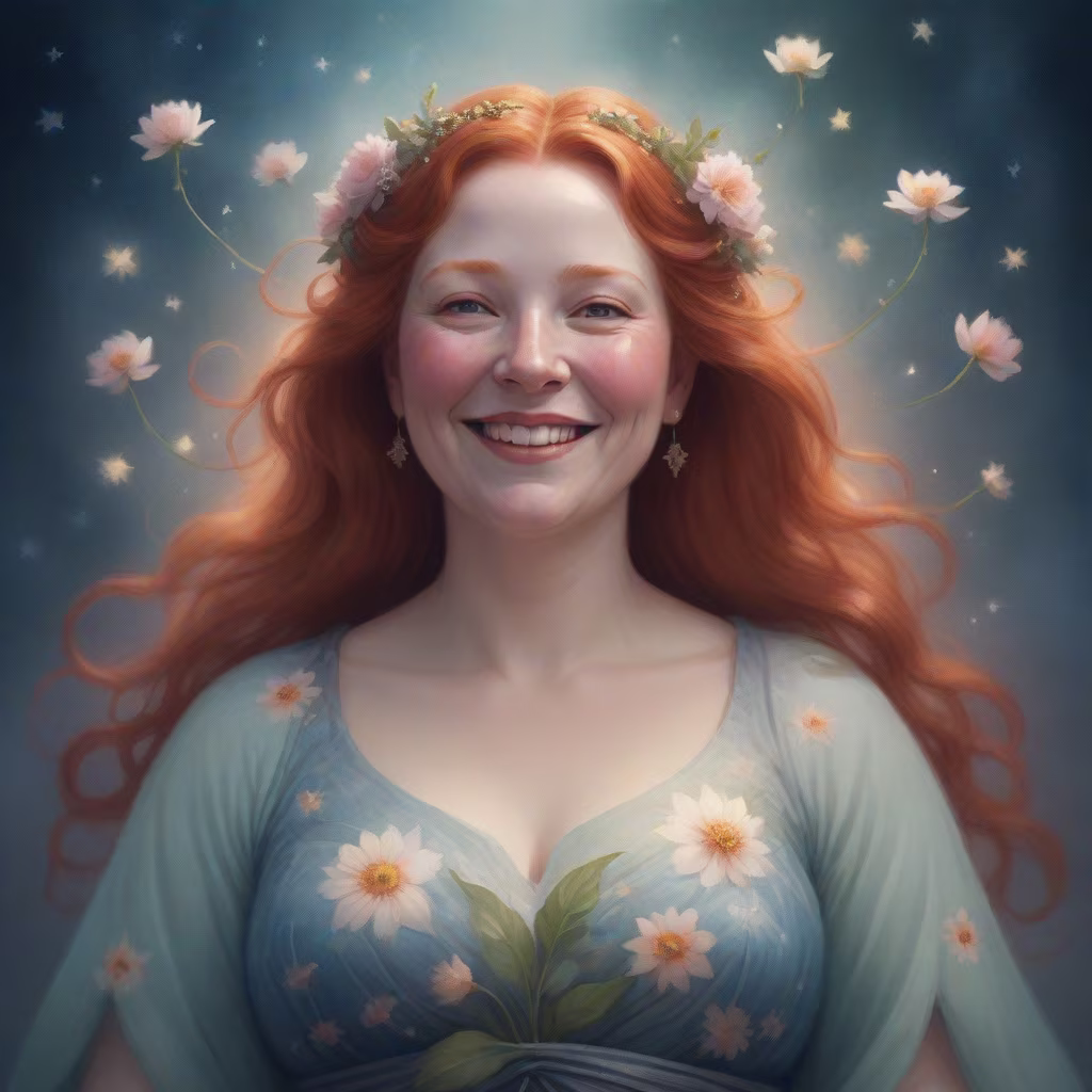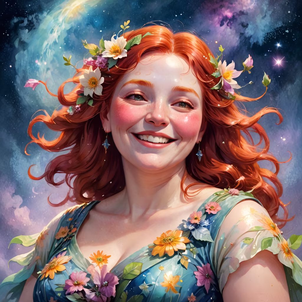 Prompt: A beautiful woman in profile, closed eyes, a thread stretches from the woman's chest, the woman holds this thread with her hand, flowers around the woman, lots of details, warm colors, neon colors