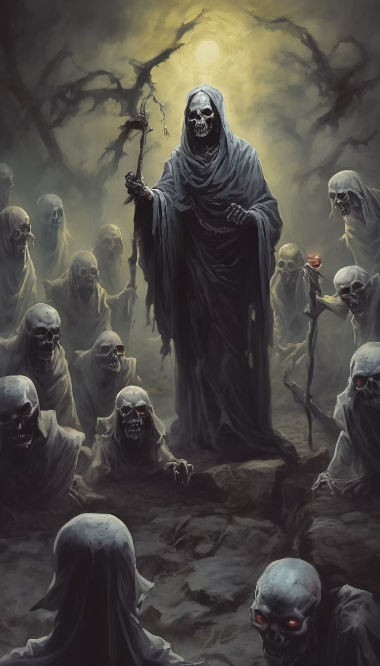 Prompt: Show a struggle between the Betaal and its prey, highlighting the malevolent spirit's power.