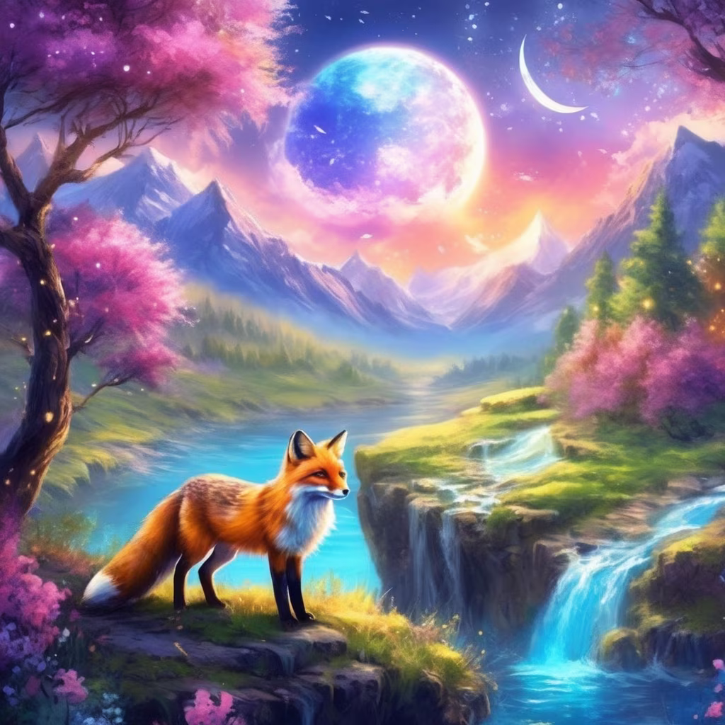 Prompt: a fantasy art of a fox on a fantasy landscape, 🖌️🌈⭐Fantasy Art⭐🦄✏️