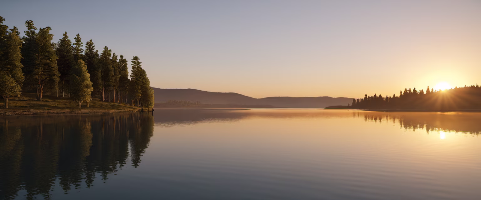 Prompt: The sun rises slowly at sunrise, reflecting on the calm lake with a golden glow. Ultra-wide visual, clean and fine translucent image, rich in details, vivid colors, greenish-orange tones, rich sense of hierarchy, professional lighting, Hollywood film sense, HDR, 4K, Cinematic --ar 21:9 --q 5