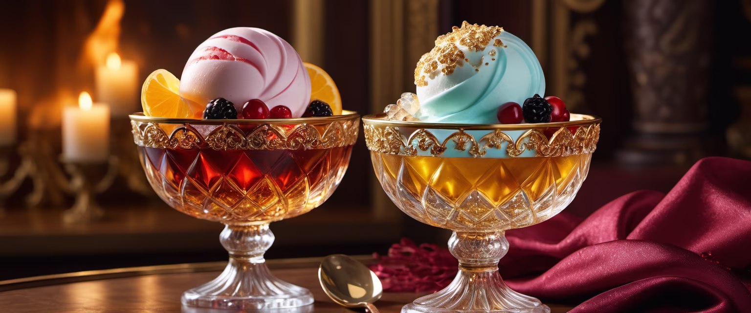 Prompt: Stunning glass of colorful icecream, crystal colorful glass, sumptuous, lavish, it, festive, ornate, Christmas decor, open hearth, warm cozy atmosphere, hyper detailed, intricate, filigree, 3D, whimsical, fabulous, fantastical, gold leaf trim, magical, masterpiece painting, hyper detailed, captivating, enchanting, intense, scattered light, composed using the golden ratio, award winning, perfect composition, ultra hd, 8K, realistic, highly detailed, lighting by Vladimir Volegov and Steve Hanks