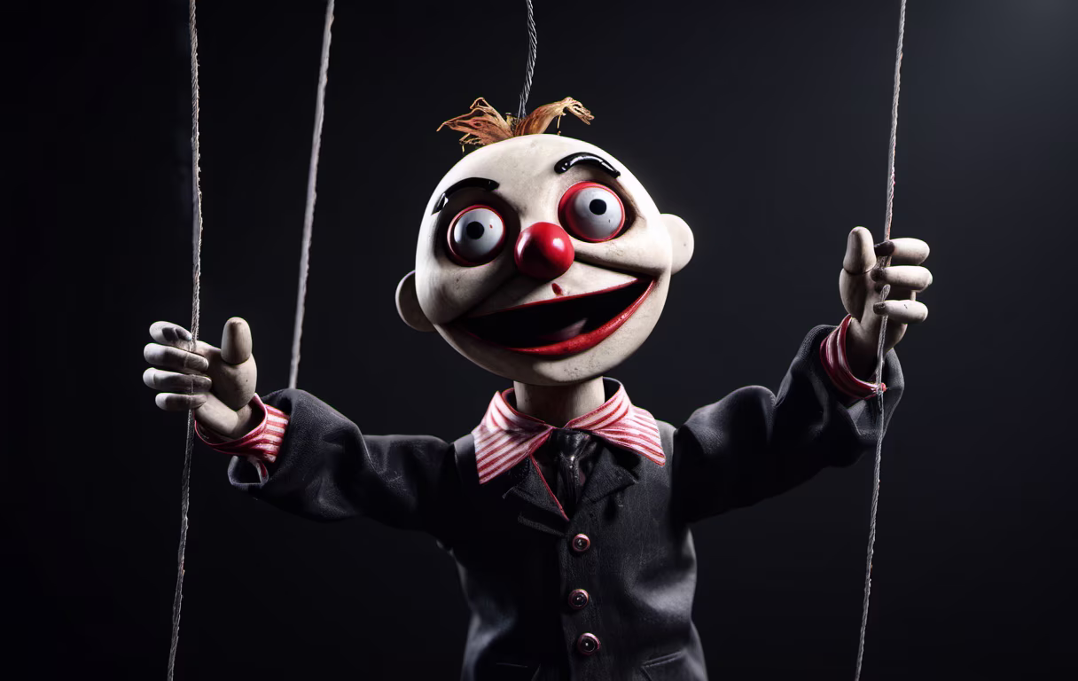 Prompt: a creepy puppet, hanging from strings, halloween theme, dark shadows, eerie lighting, by Gerald Brom, Raphael Lacoste, unreal engine render, 8k resolution, high poly, photorealistic materials, detailed textures, ominous atmosphere