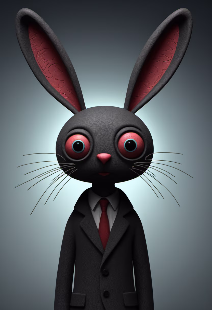 Prompt: (artist ZladislawBeksiński:1.1)(artist Anton Semenov:1.2) dark drawing, Bunny with big eyes, craft claystyle(((The image is drawn in digital format with a high level of detail and an emphasis on lighting and textures. It is on trend on artstation and has a cinematic look. quality)))