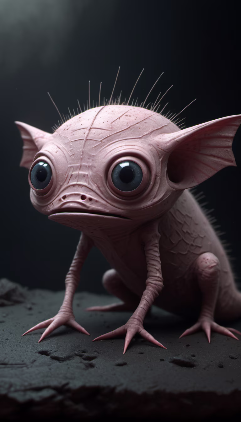 Prompt: (artist ZladislawBeksiński:1.1)(artist Anton Semenov:1.2) dark fantasy , SScarry Axolotl with big eyes,craft clay style (((The image is drawn in digital format with a high level of detail and an emphasis on lighting and textures. It is on trend on artstation and has a cinematic look. quality)))