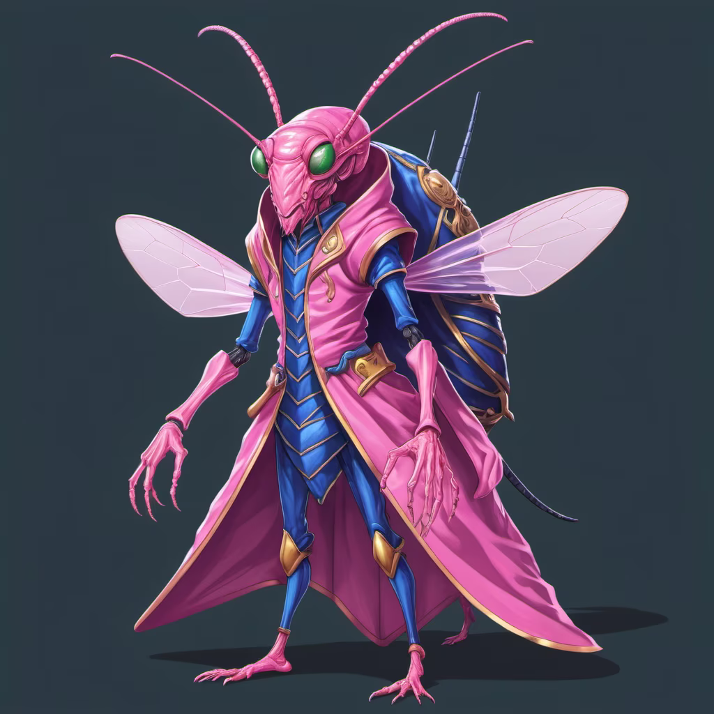 Prompt: anthropomorphic cricket, magic powers, wizard clothes, full body, four arms