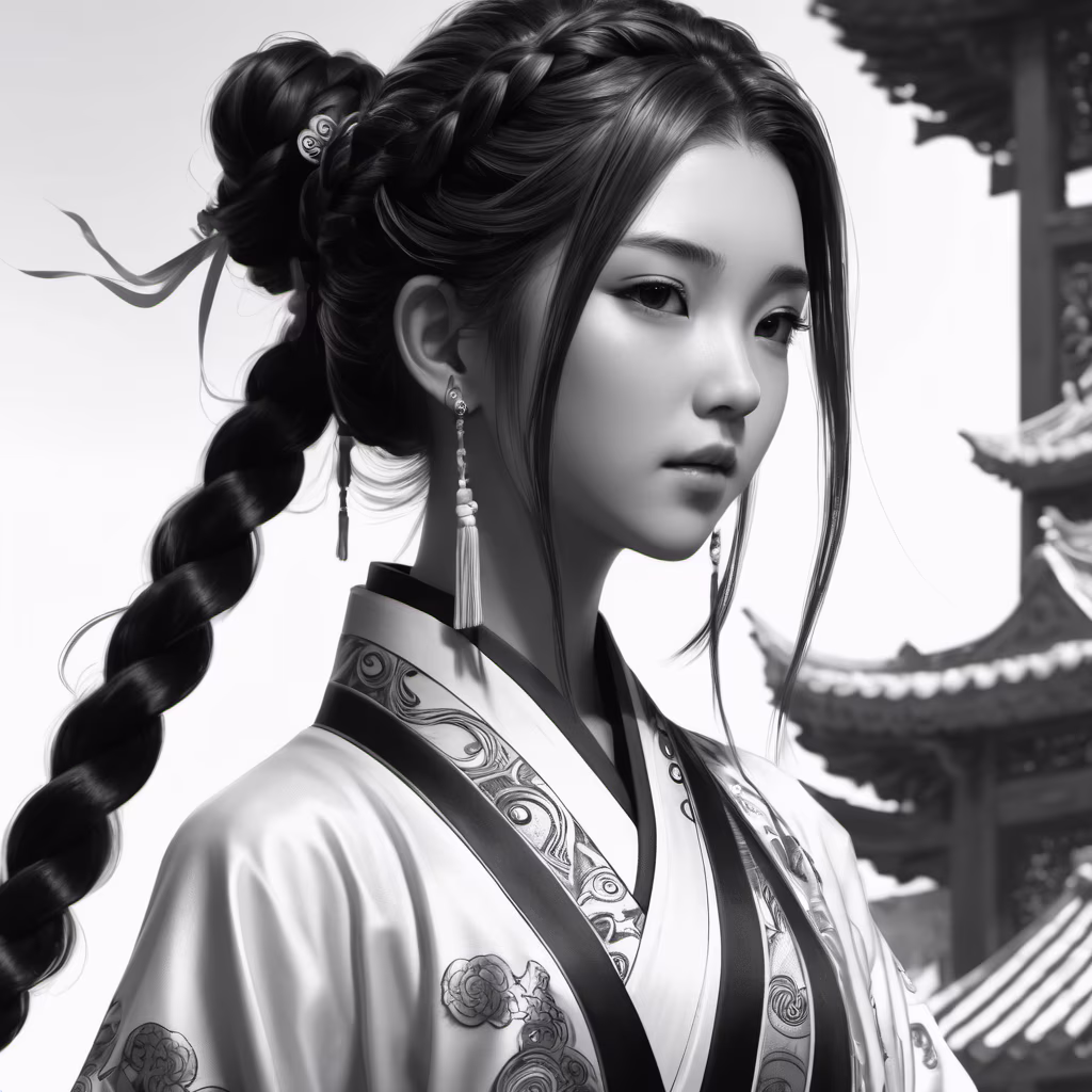 Prompt: banhua, doodle, 1girl, braid, robe, Chinese clothes, Close-Up, waves, mythic, totem, monochrome,(masterpiece:1,2), best quality, masterpiece, highres, original, extremely detailed wallpaper, perfect lighting,(extremely detailed CG:1.2),figure full body map