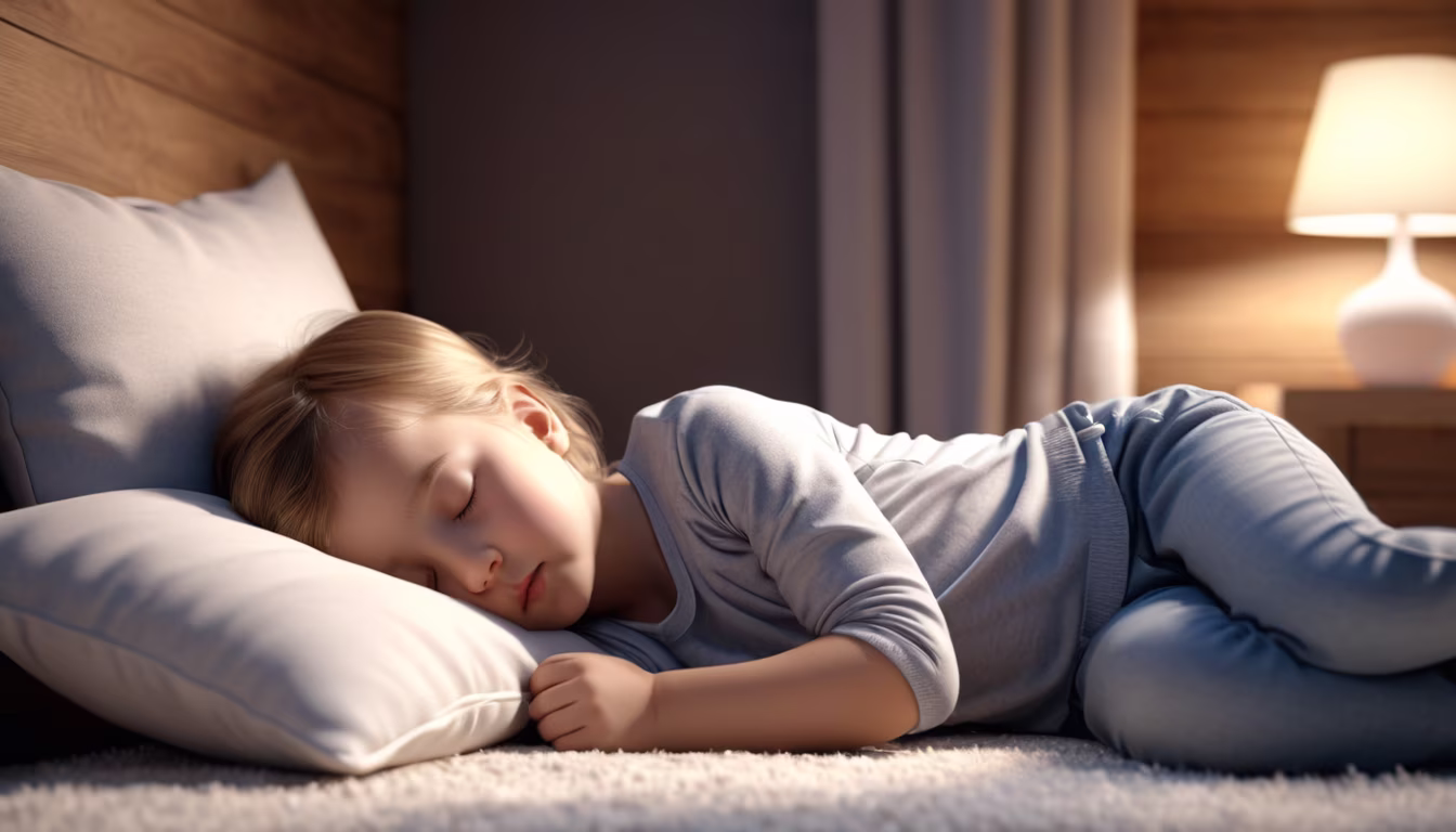 Prompt: 8K Ultra HD, highly detailed, A cute child sleeps sweetly in a warm and room, full-body shot
