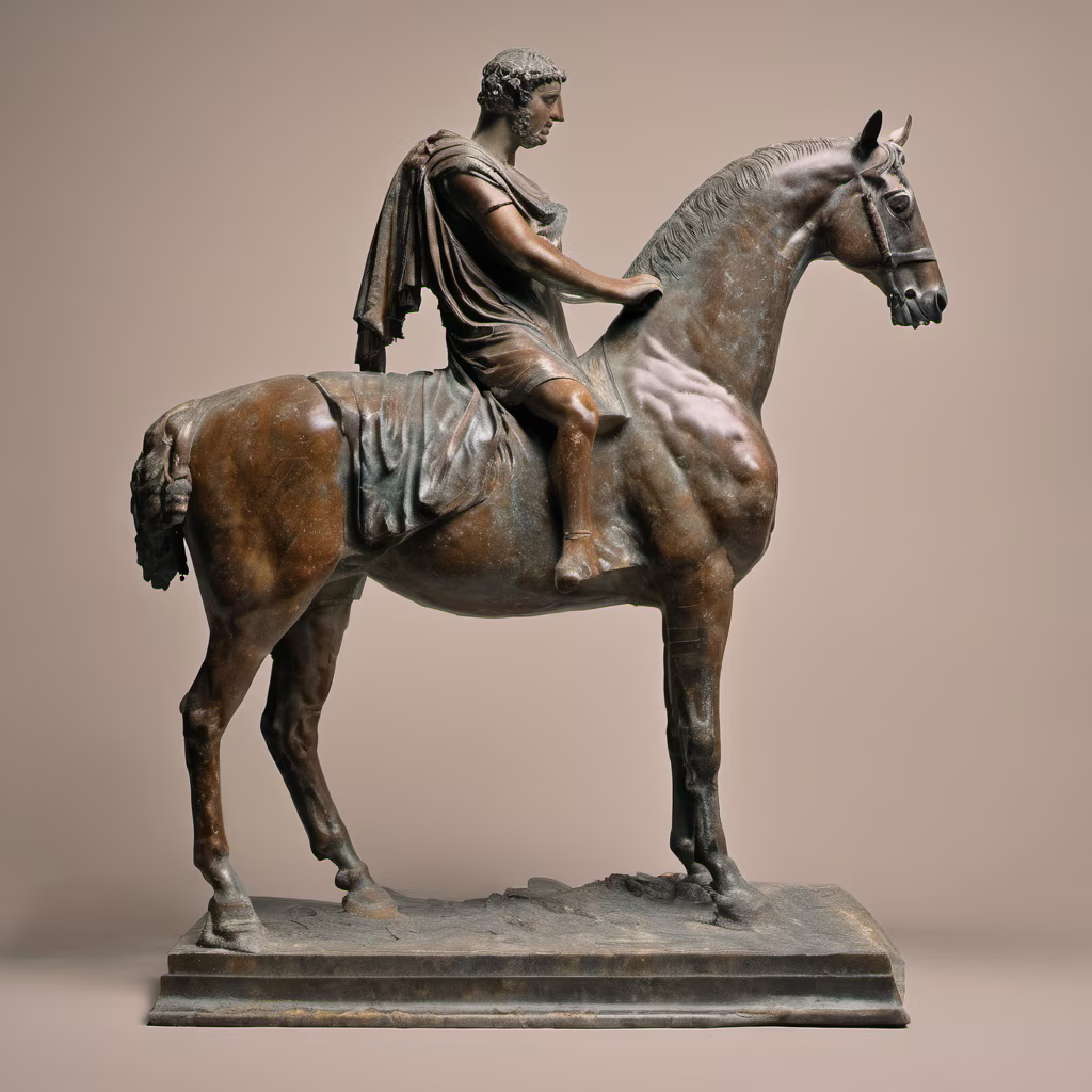 Prompt: a horse riding on a horse, old greek style, fine Line drawing