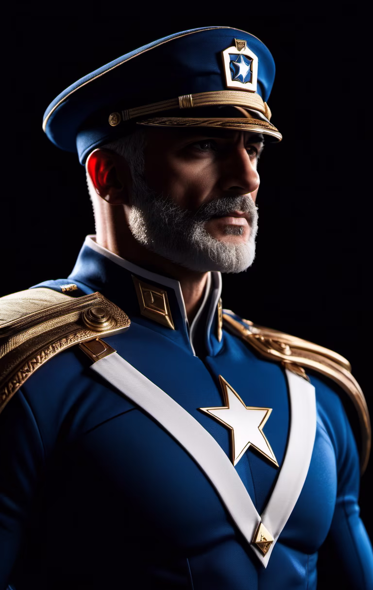 Prompt: captain israel marvels superhero bodysuit made of israel flag , black background
