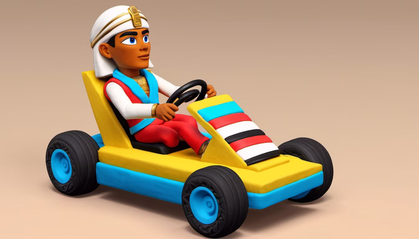 Prompt: Egyptian mummy’s driving Mariokart go karts on the moon hd 3d 32k