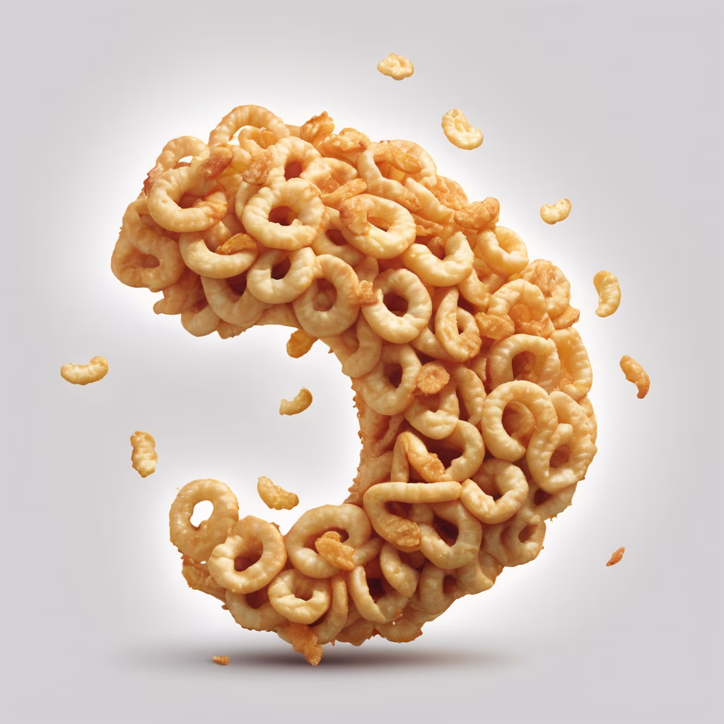 Prompt: a photorealistic vegan, crunchy, crispy snack in a curvy shape, light in colour, isolated, floating over a flat white background