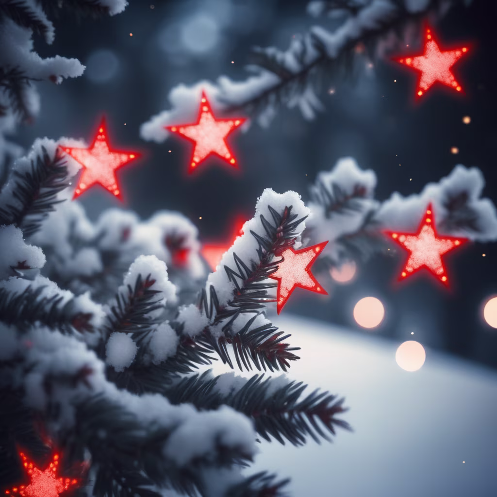 Prompt: Christmas tree, garlands, stack of books under the tree, lanterns, blue background
