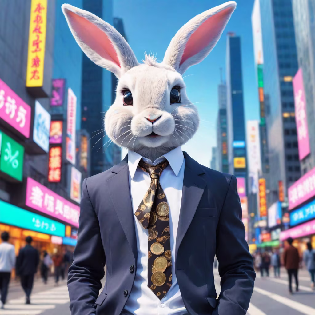 Prompt: profile picture of a bunny male rich with electronic money anime style in the middle of a city