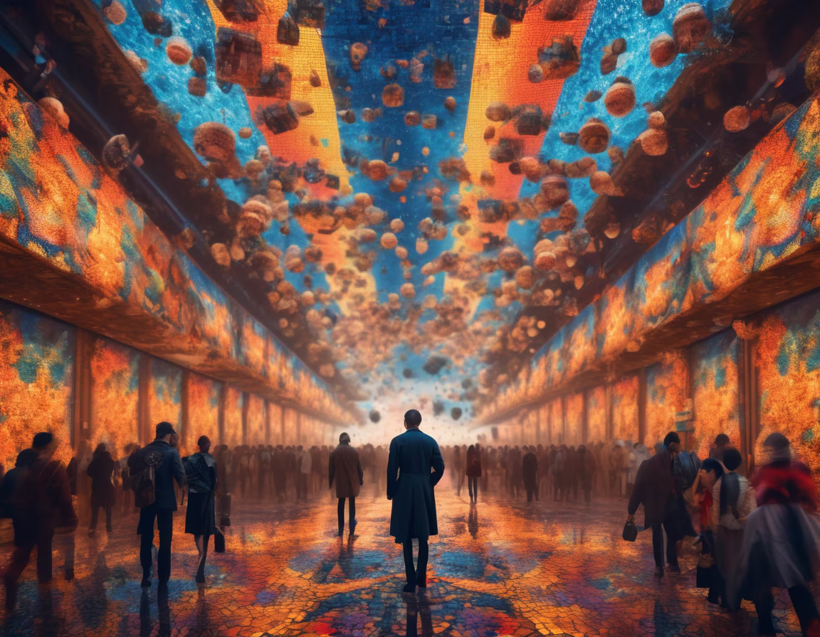 Prompt: eventually it succumbed, yielding adequate results. (oil painting, bokeh gaussian blurred mosaic background, sharp focus, thick bold outlines, triaxial symmetry, masterpiece, ultradetailed, uhd, hyperrealistic, 16k, breathtaking, stunning, wlop, jan urschel, ilya kuvshinov, shephard fairey, ryohei hase, emanuele dascanio, wlop, brandi milne, isabel samaras, sas christian, jeff soto)