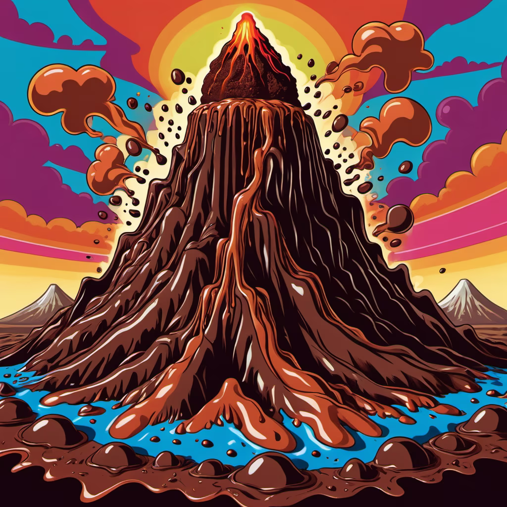 Prompt: A surreal painting of a german chocolate cake, and the cake is stretched out to make it very very tall.