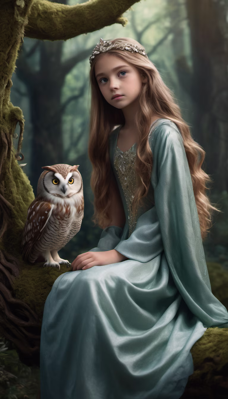 Prompt: Lila surrounded by woodland creatures of all shapes and sizes, listening intently to a wise old owl perched on her shoulder.(Photorealistic stylehttps://cdn.discordapp.com/attachments/1100170312106127410/1194890345230651482/A_young_princess_with_flowing_hair_and_curious_eyes_adorned_in_a_simple_gown_standing_at_the_edge_of_the_enchanted_f_style-Digital_Art_width-768_height-1344_aspect-9-16_seed-0ts-1704954457_idx-0.png?ex=65b1ff5a\u0026is=659f8a5a\u0026hm=ed5749d3e89fbf3d50744f50c60c15e64893fce23797219455a9fbb9c94a4f08\u0026