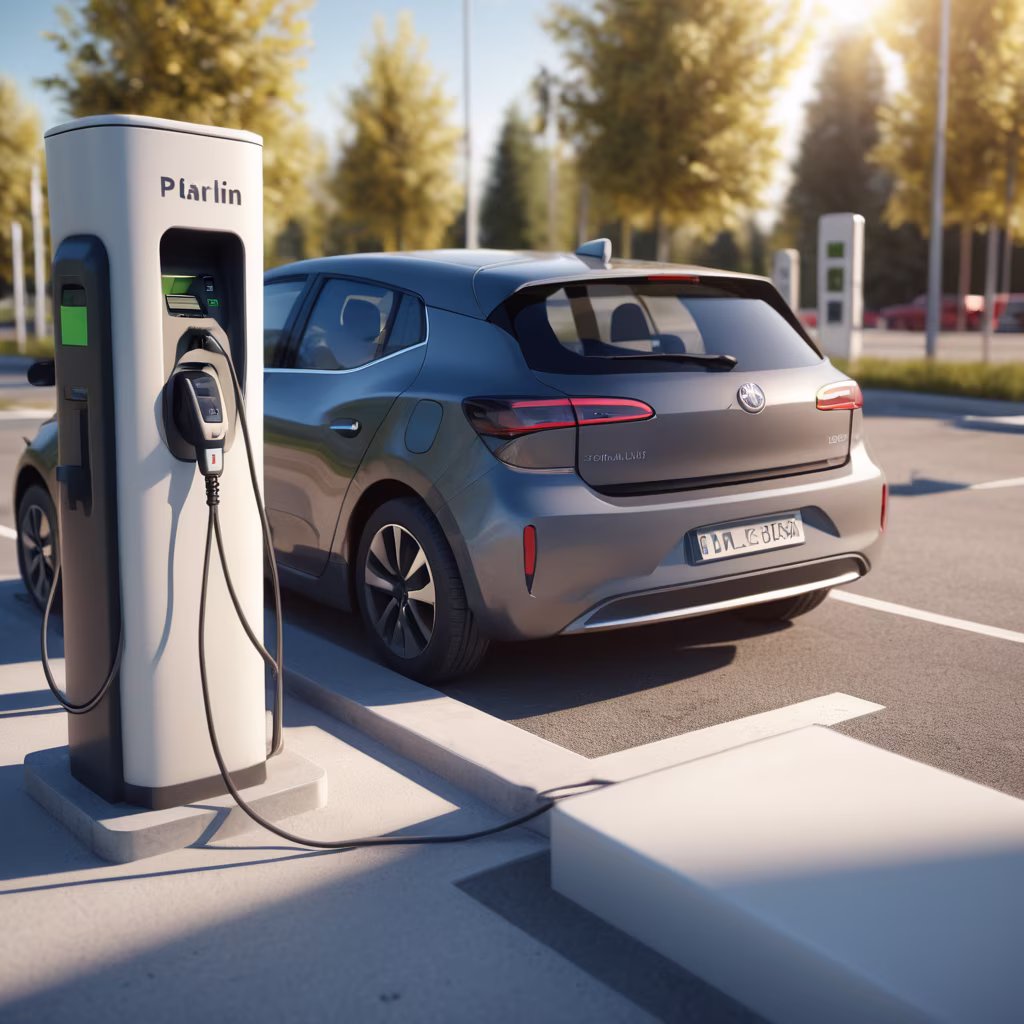 Prompt: On a sunny morning, a 30-year-old man drove to the car charging station and charged his car there
