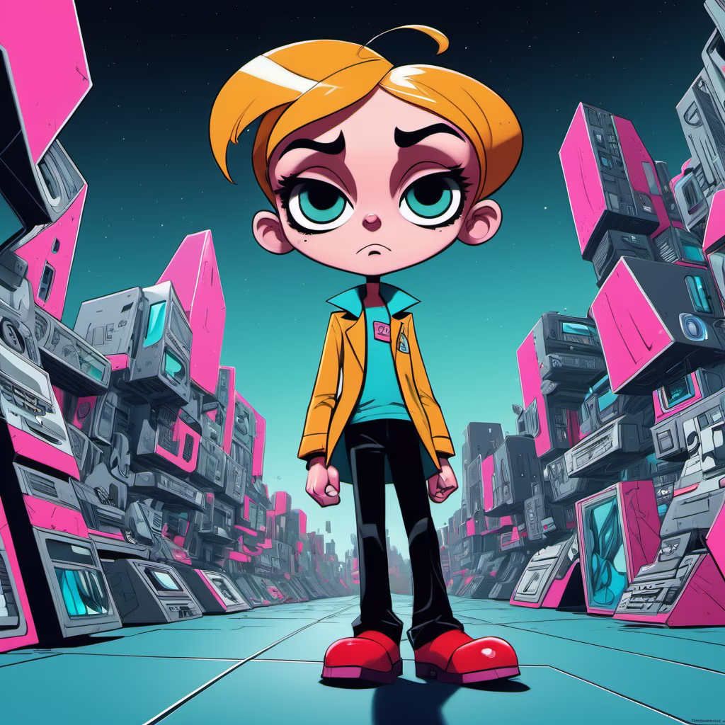 Prompt: dog in cyberpunk styled, (forced perpective, repeating, horizon, infinite, complexity, extra detail, random jagged object morphing into another random smooth object of opposite colour using {Old cartoon drawing | Modern Cartoon drawing | Realistic cartoon | Classic Manga | Modern Anime | Chibi Drawing | Minimalistic Cartoon Art | Tim Burtonesque | Mid 20th Century | Powerpuff Girlsesque | Archeresque | Mad Magazine} styling, deep focus, fixed point, ultra hires, super high resolution, colour cycling between 8 random contrasting colour shades ),, closse-up, odd angle, odd perspective