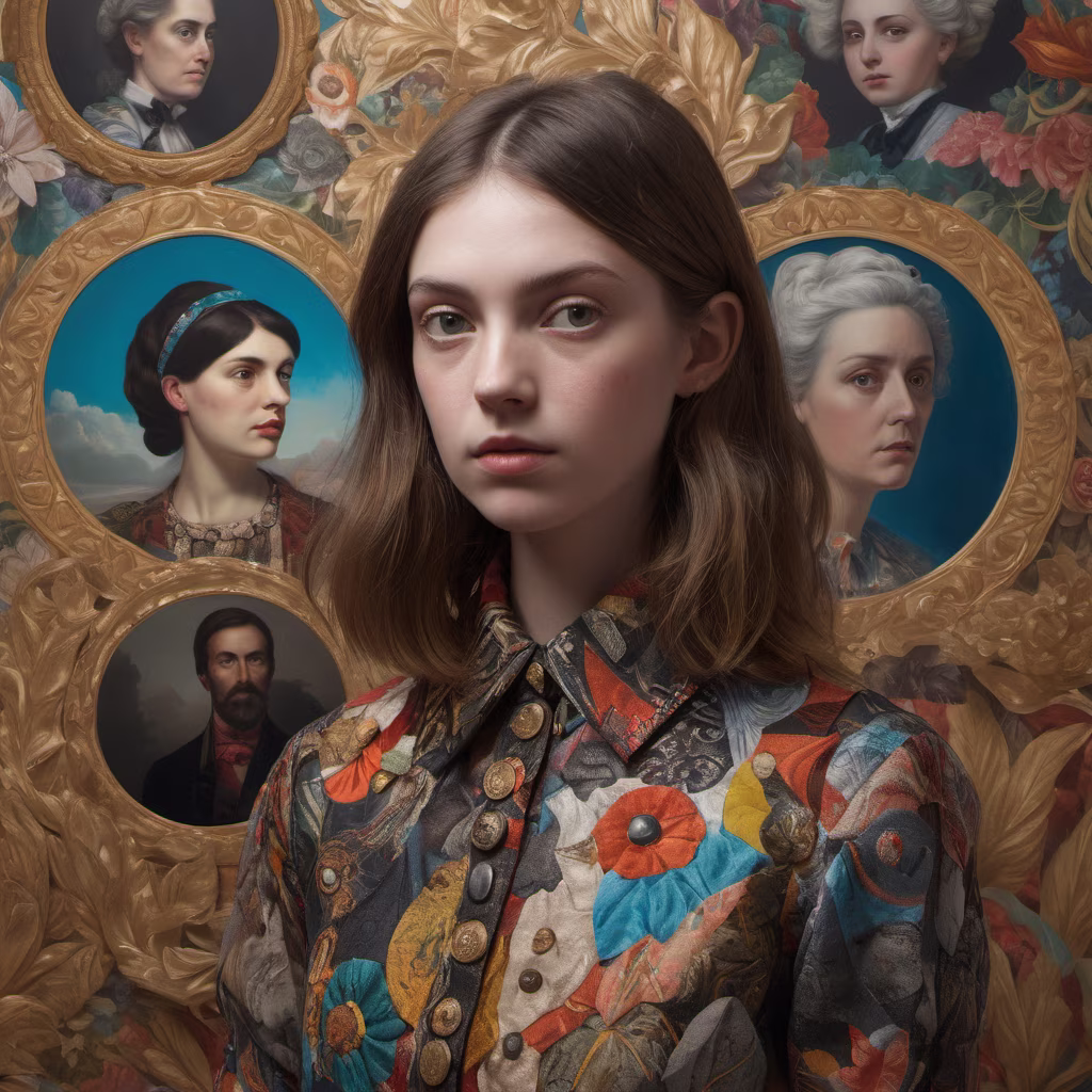 Prompt: Mixed eclectic beauty’s portrait illusory wallpaper Creators explore, Beautiful new horizons, In art's reflection