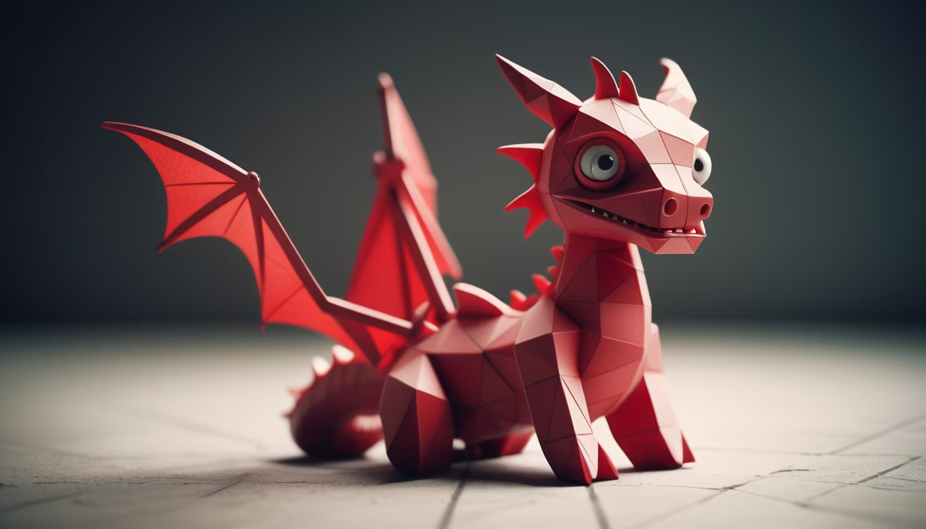 Prompt: The simple geometric structure of a red dragon forms the Q-version, with a plush feel on the surface in C4d style