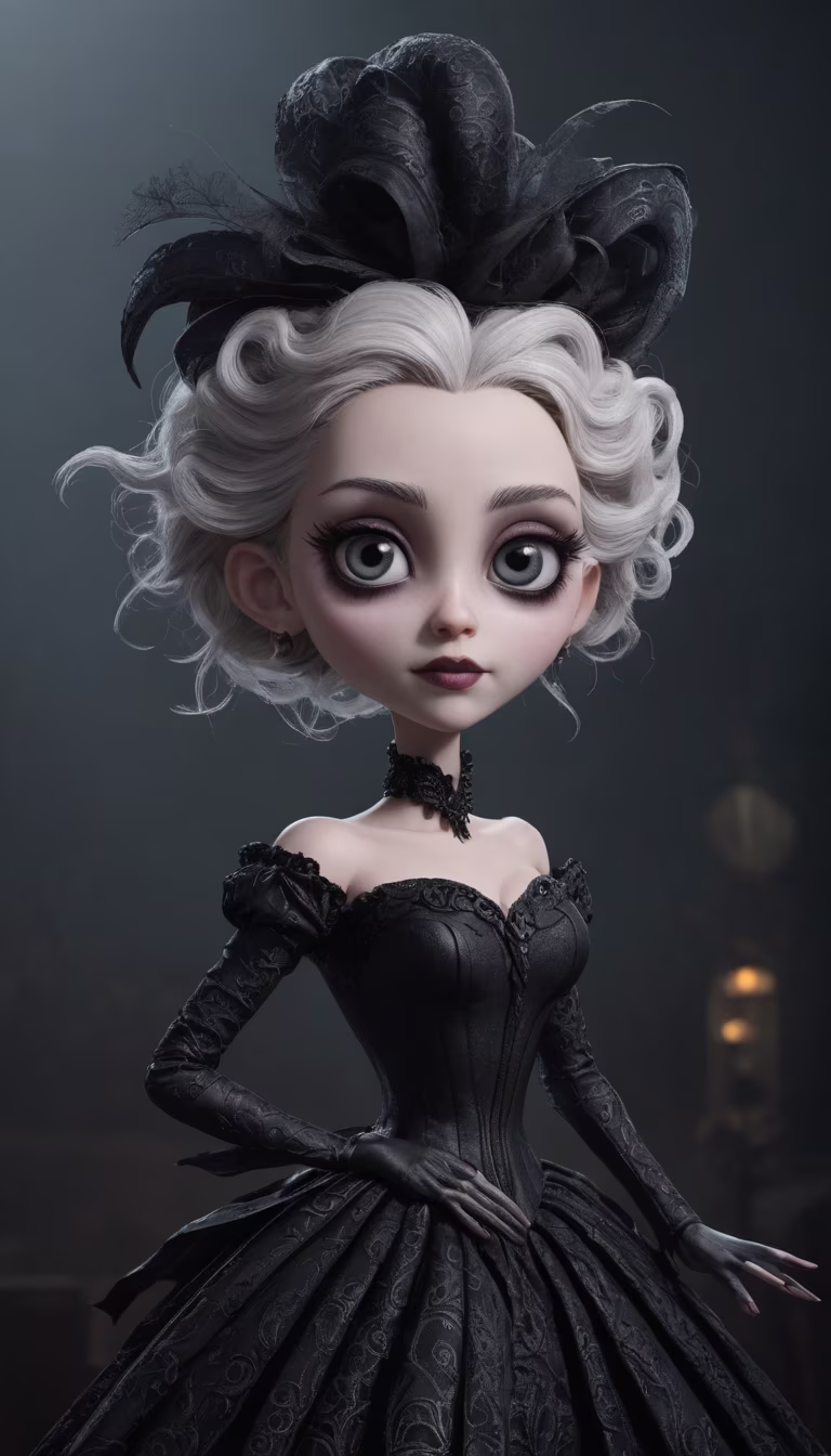 Prompt: Tim Burton style, ladygaga, image is digitally painted with a high level of detail and a focus on lighting and textures. It is trending on artstation and has a cinematic quality