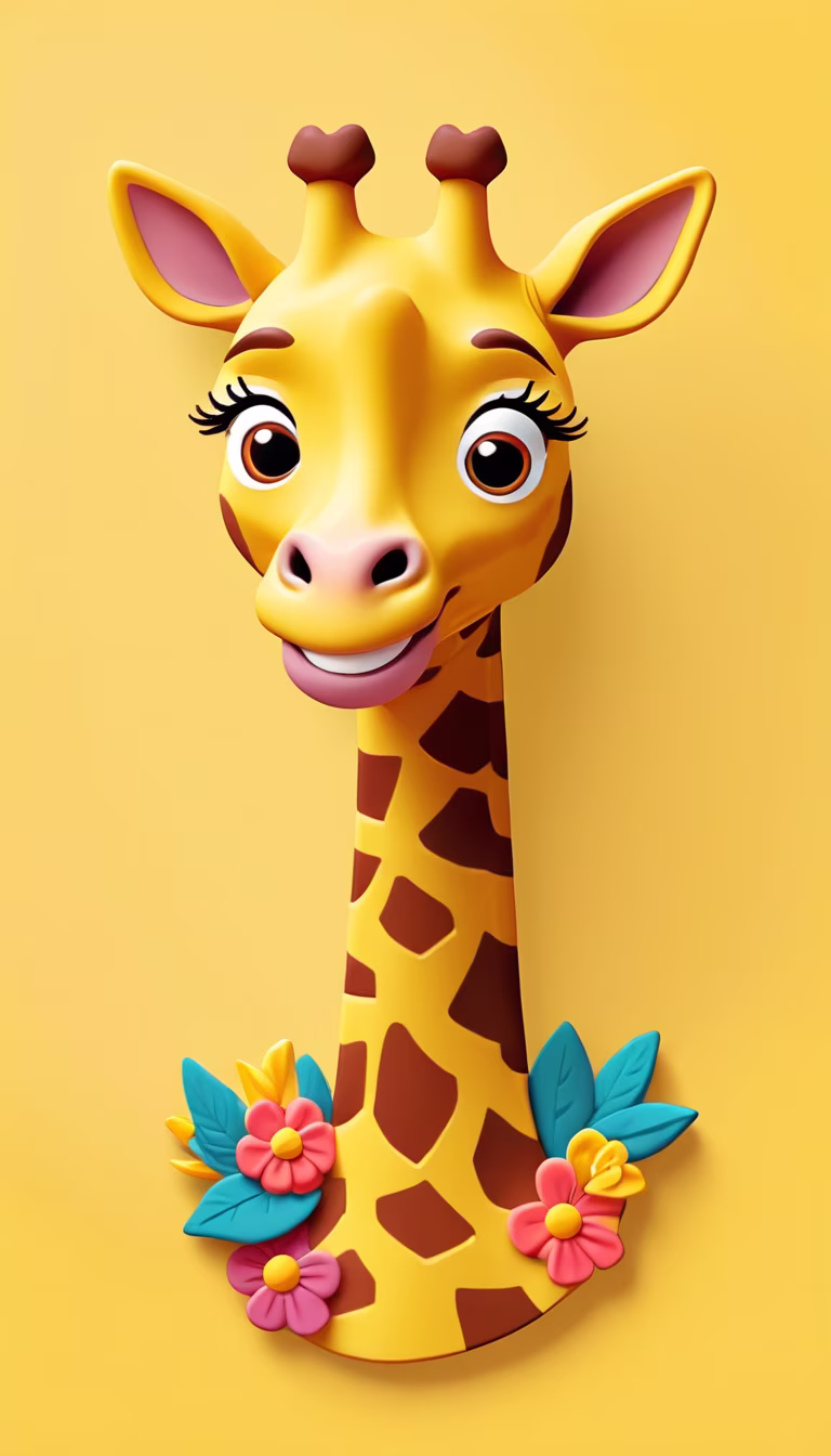 Prompt: kawaii giraffe, professional sticker design, flat design, vector lines, colorful