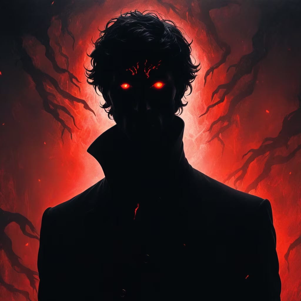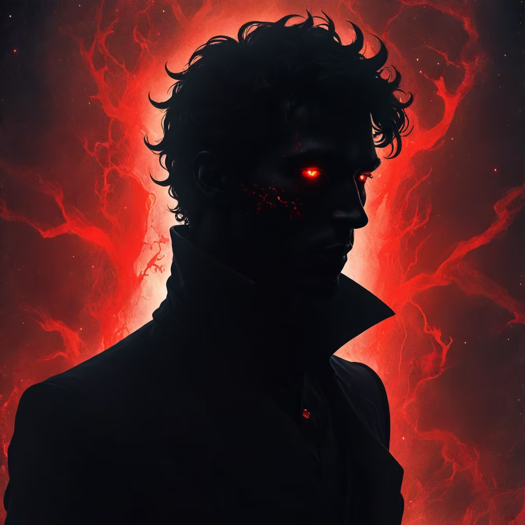 Prompt: Beautiful woman, the woman is scared, the woman is embraced by a dark shadow behind her back, the shadow has red eyes, gloomy atmosphere