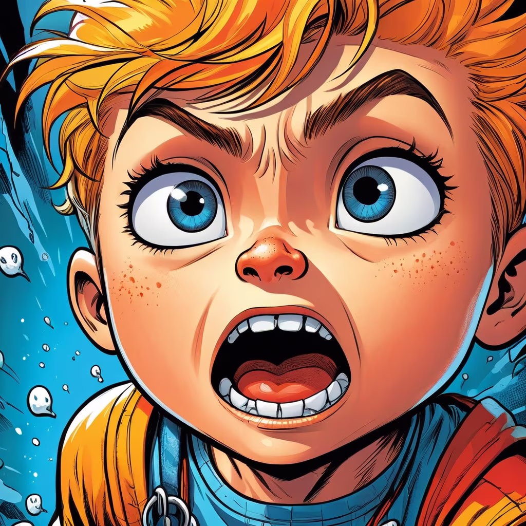 Prompt: Close-up on a student face right accros. She is nine years old. There is no expression on your face. She just talking