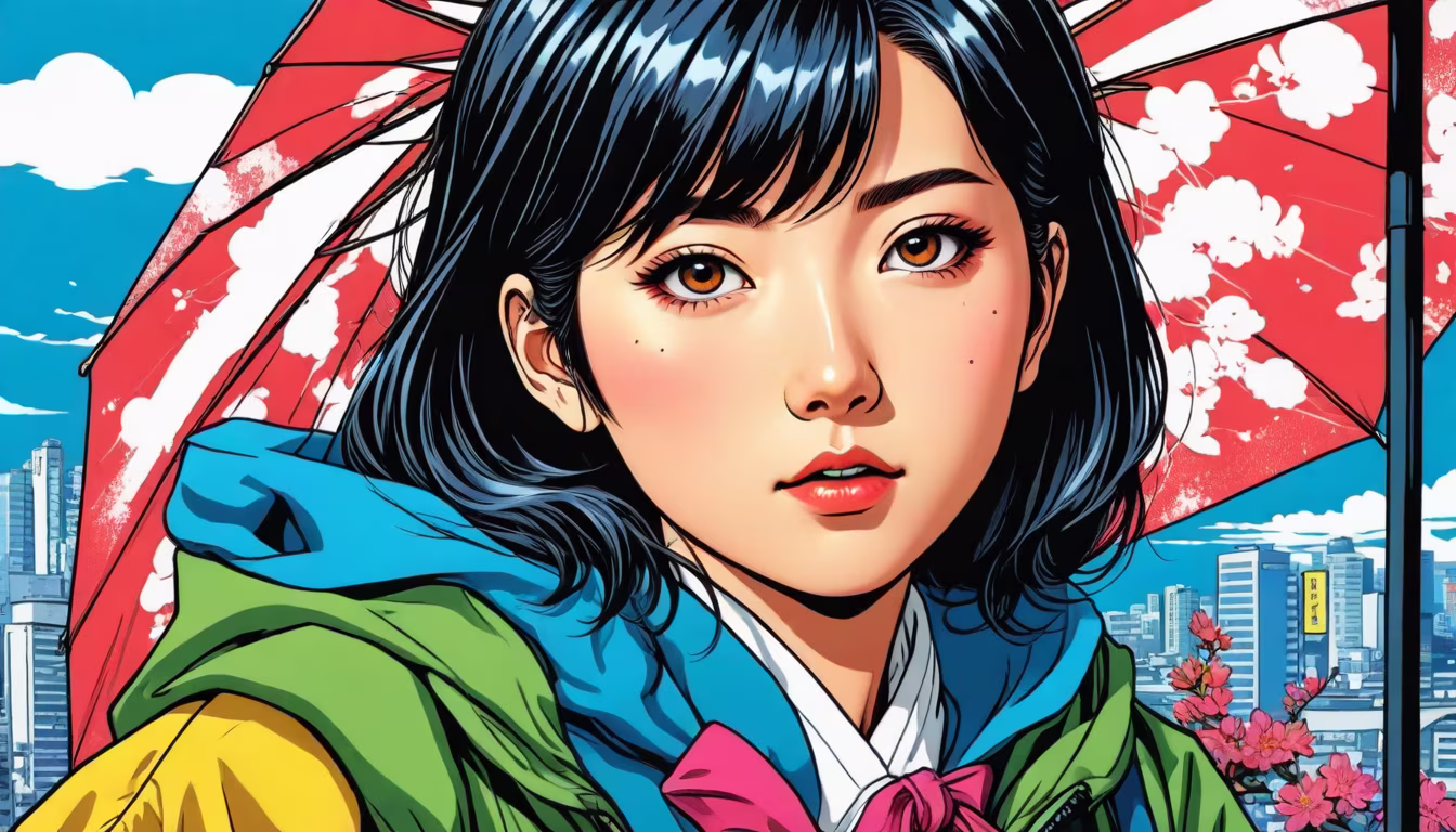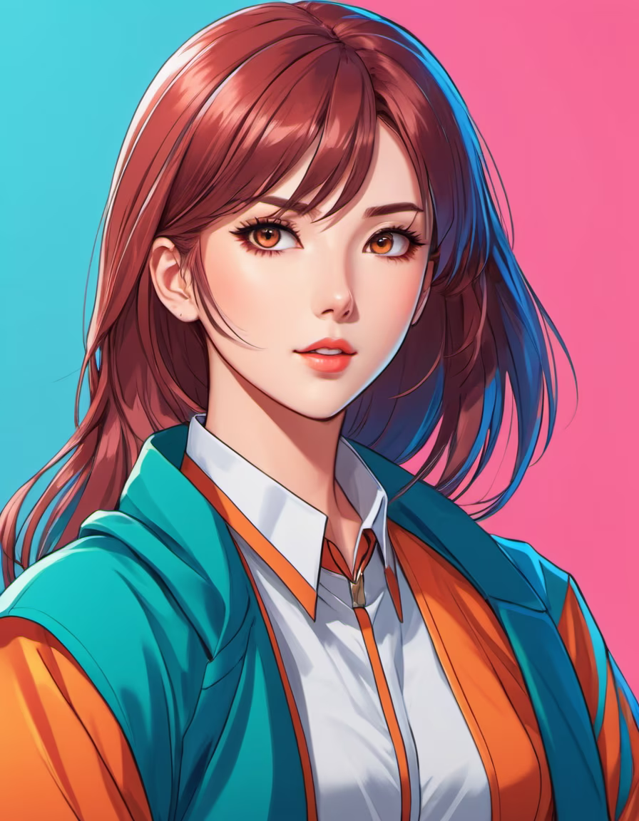 Prompt: a girl with big eyes, a gothic girl with porcelain skin, in the style of 'Makoto Shinkai, with a wason smile Style: Neon Punk