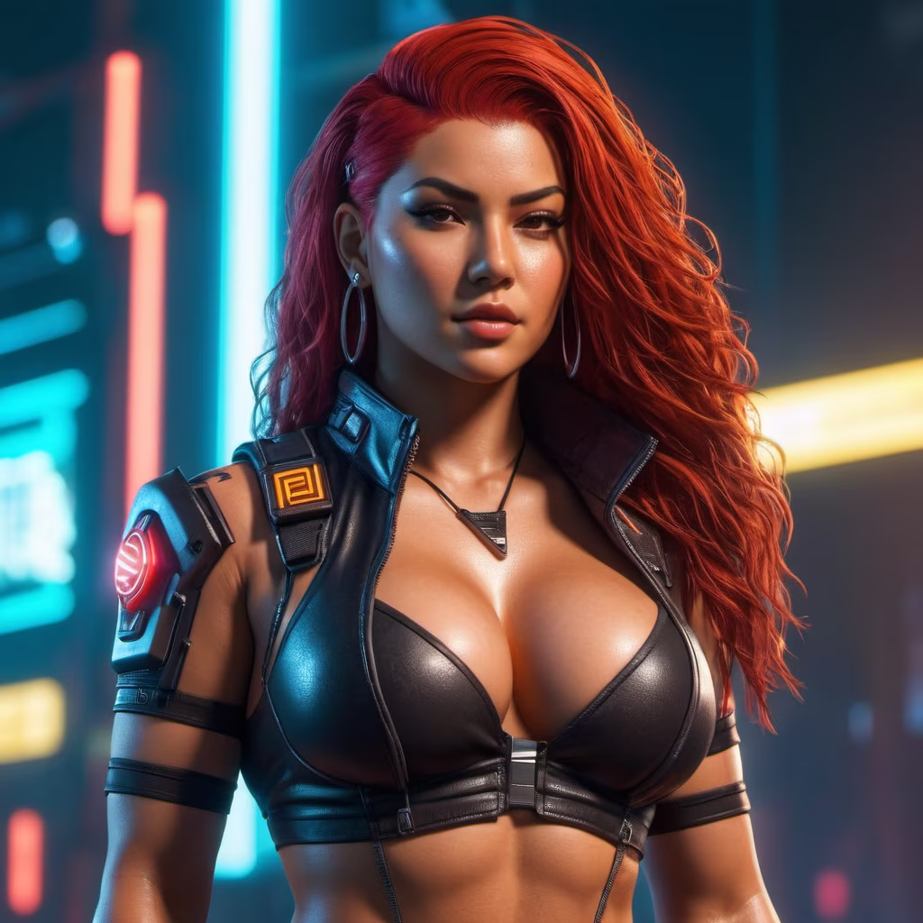 Prompt: a beautiful and stunning latina_very_well-proportioned_full-figured_well-rounded_girl_fit-tight- bikini, muscular body big boobs body_sweaty_skin_volumetric_lighting_very_intricate_details, very detailed face and body, long red hair
