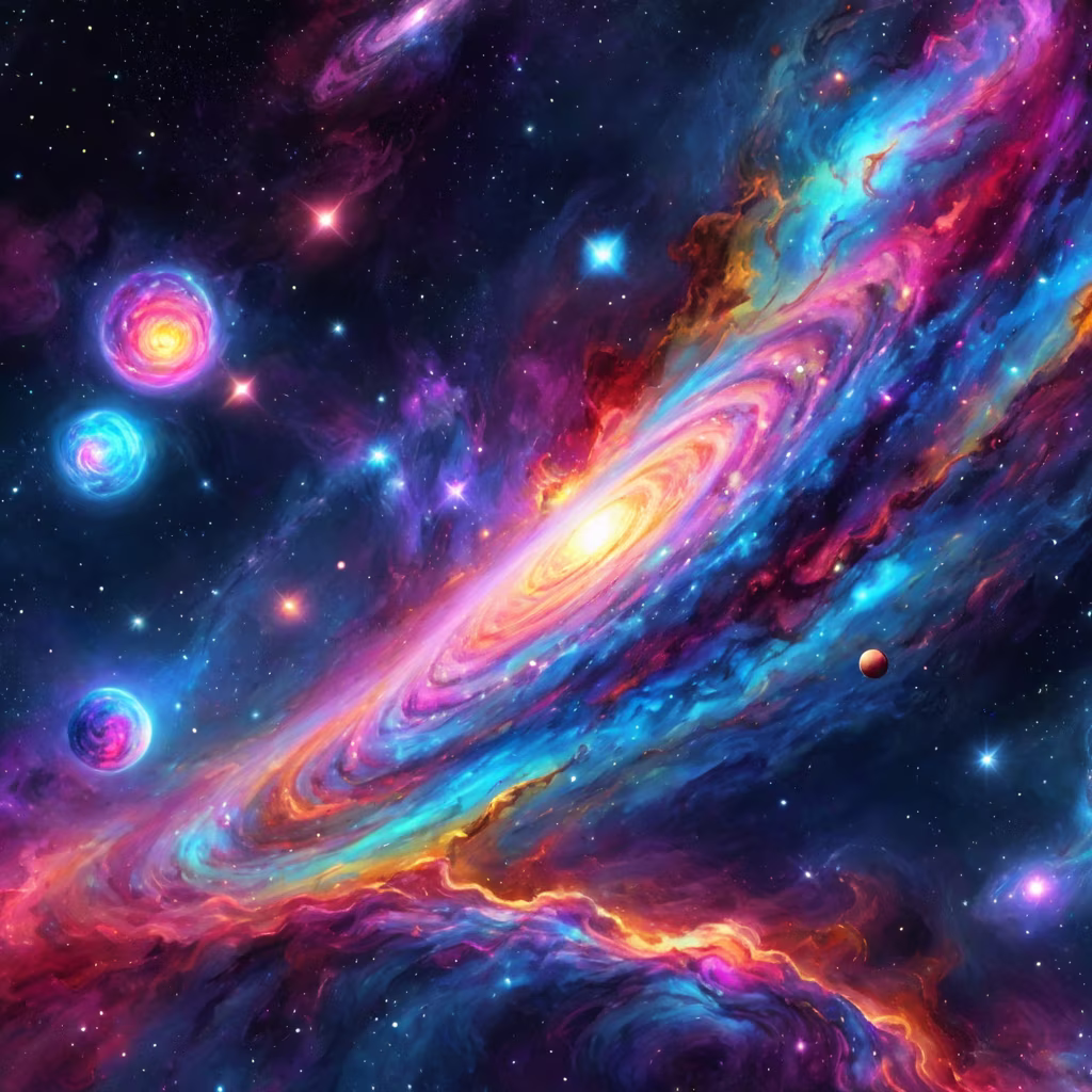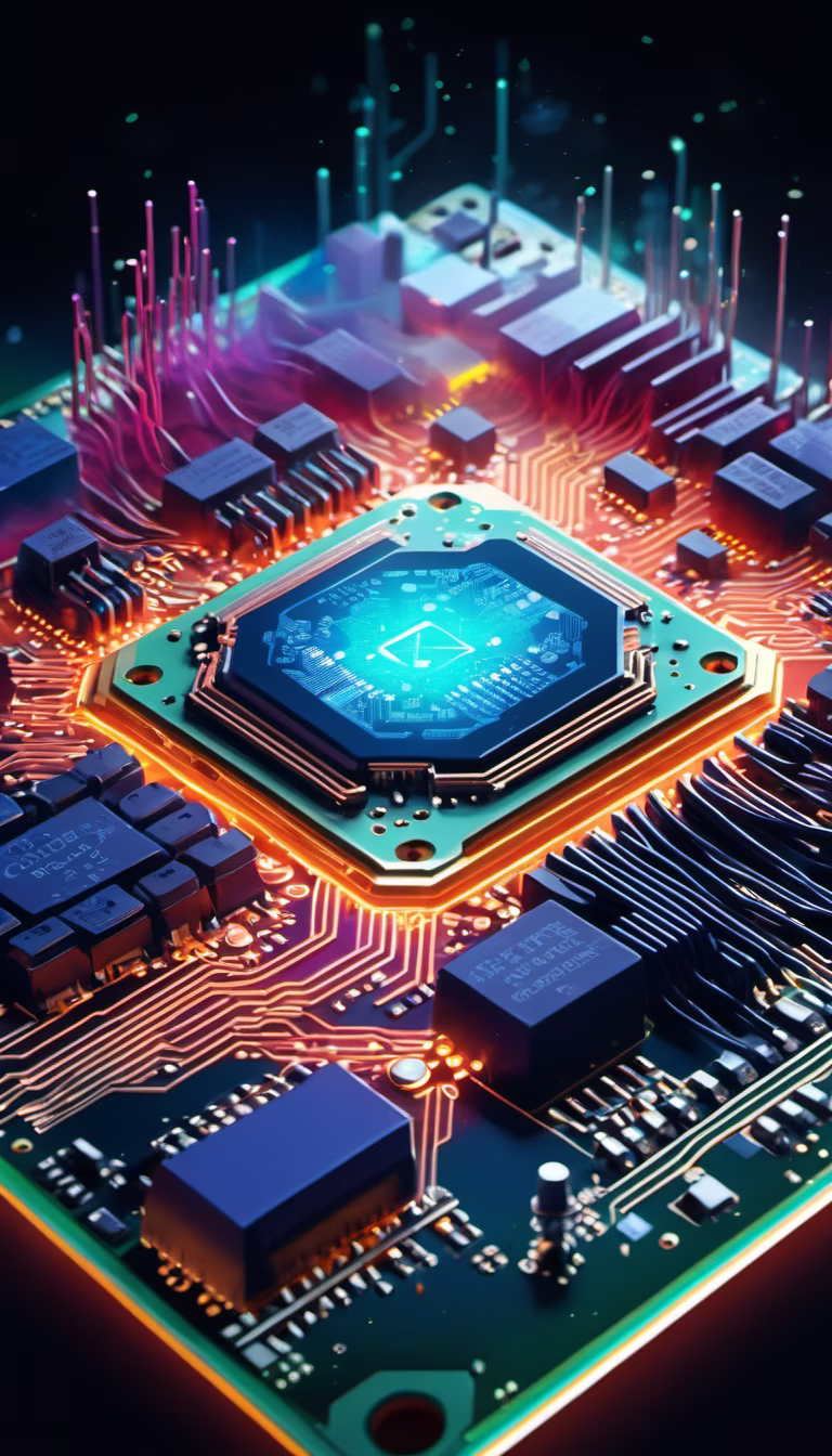 Prompt: modern printed circuit board represented as a colorful explosion of nebula