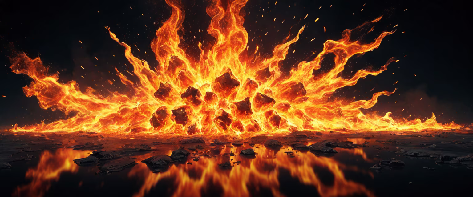 Prompt: a huge exploison of ember, sweeping across an environment as a wave or dome