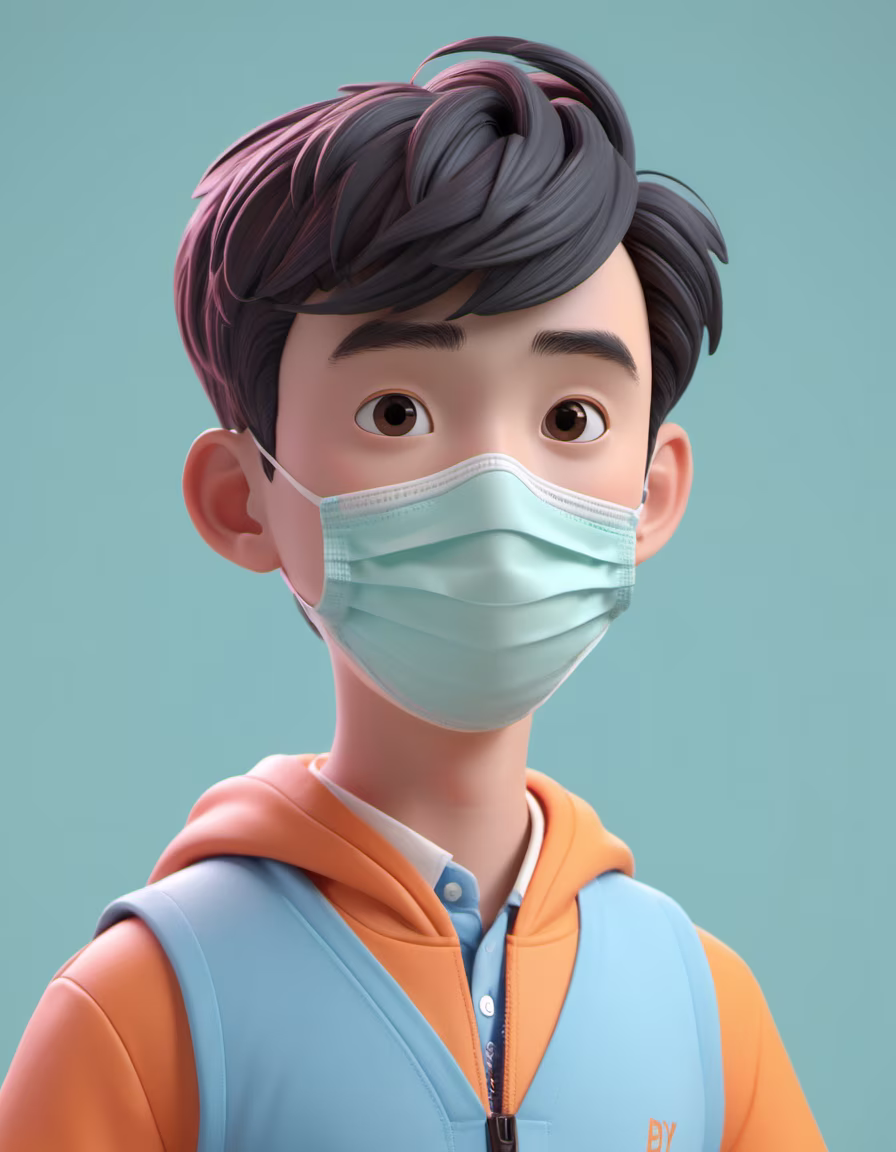 Prompt: Young boysprint,to wear a mask,IPby pop mart,pixar styleCharacter,pastel color, cleanbackground,3D render, Soft focusoc,blender,best quality
