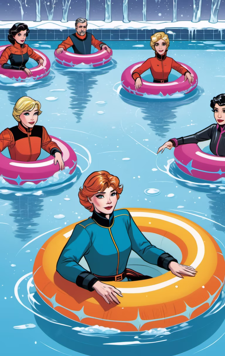 Prompt: A joyful scene in comic style depicting four bridesmaids encircling the bride, hands joined in celebration. Dynamic and vibrant, radiating happiness and unity. Comic book aesthetic with bold lines and bright colors, resembling a cheerful illustration. Shot with a Nikon D750 and a 35mm f/1.4 lens to capture the entire group in the frame. Playful, natural lighting emphasizing the lively atmosphere. Outdoor environment, a picturesque garden setting, capturing the essence of a joyous wedding celebration.