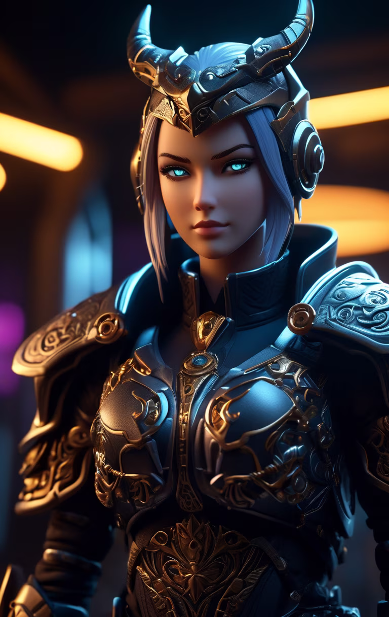Prompt: 3D render, gorgeous warrior, chainmail and leather armor, waifu, best quality illustration, pixiv masterpiece, ultra-detailed, dynamic pose, overhead angle, anime waifu( 30 - years - old), flirty, fit-thick-build, gorgeous face - perfect with perfect anime eyes - symmetric, subsurface - scattering, finer hair, darker shadows, defined - pupils and iris, action figure, (full body), well-balanced body ,sharp details , action figure, beautiful face, clear facial features, Figma, anime art, action figure, ultra-realistic , UHD, 8k