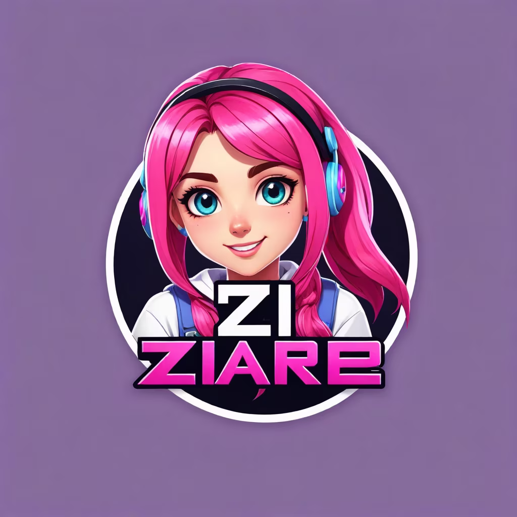 Prompt: Make a gaming logo for girl gamer, streaming live, fierce girl gamer , wearing headsets, gaming controller in hand, gaming setup room background, letters ZI