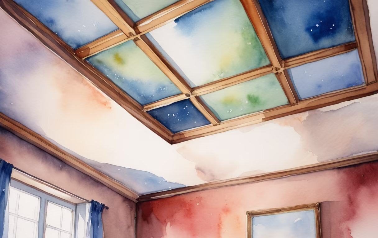 Prompt: higest quality, extremely detailed, rich bedroom ceiling, looking from below