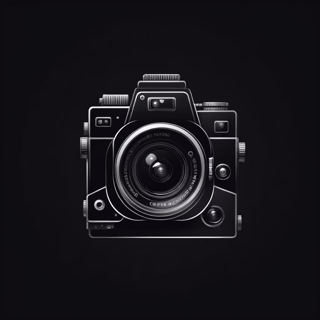 Prompt: logo, minimaliste et original, une caméra blanche sur fond noir, avec peu de details