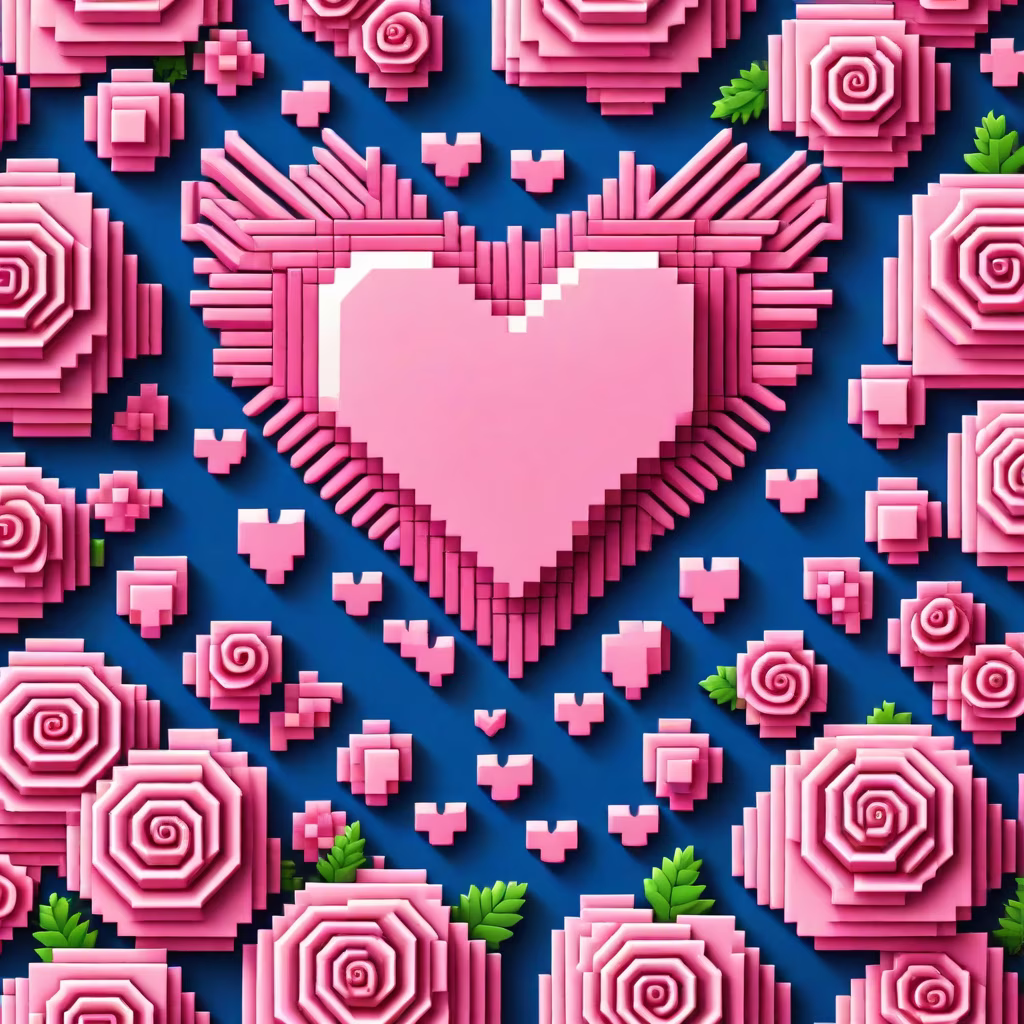 Prompt: Retro pattern, graphic design, pink love heart, print style Cupid flying, smooth pink lines, roses as border