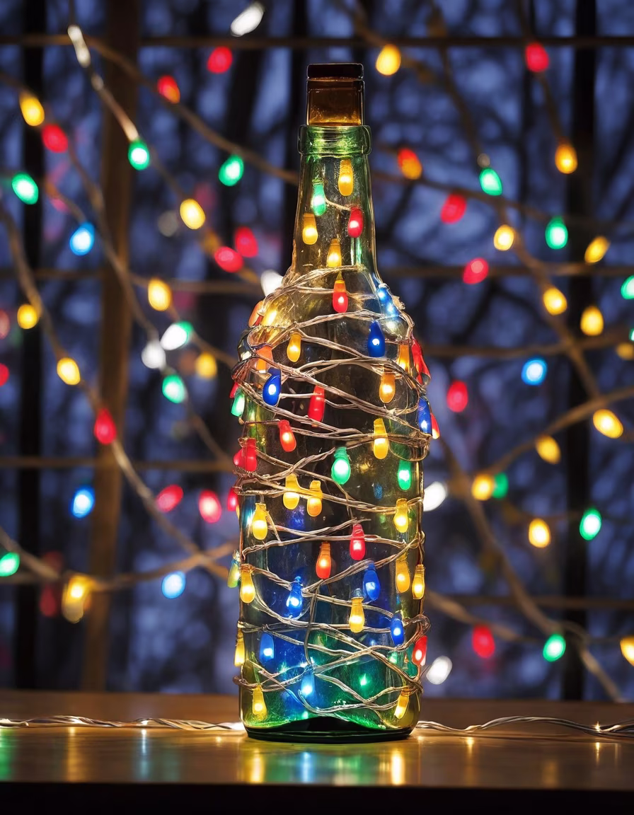 Prompt: Draw a still image of flowers blooming inside a wine bottle using the artistic technique of visual blending