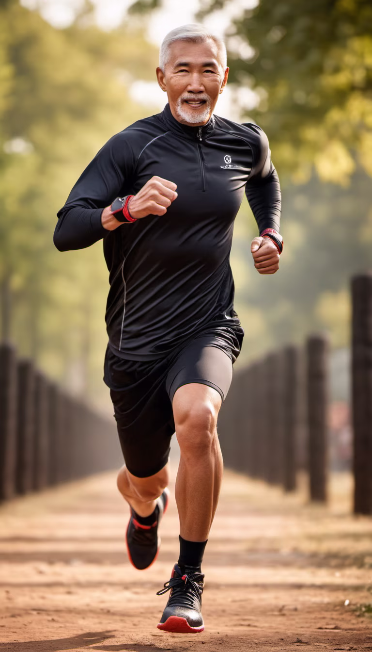 Prompt: Park workout: running, warm-up, stretching, dodge, Muay Thai, elderly, normal proportions, hyper-realistic, 8K, ultra-detailed, hyper-realistic.