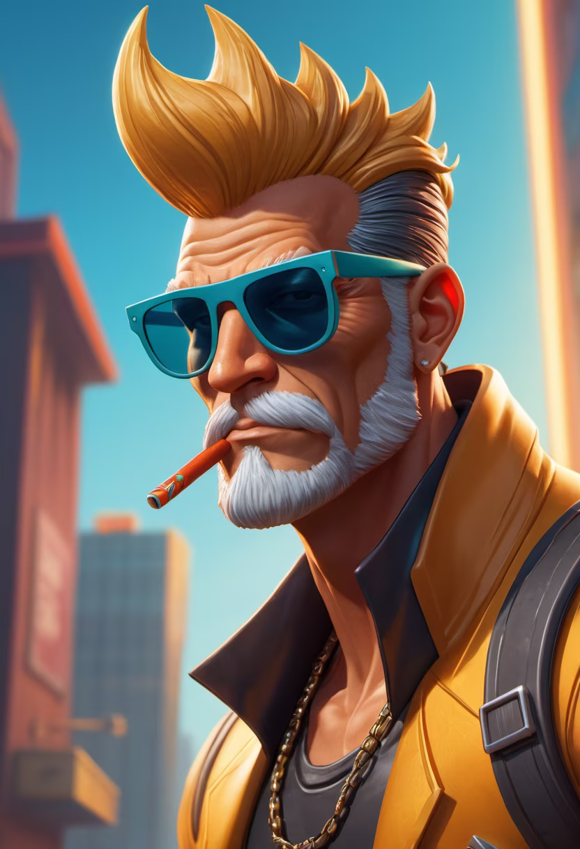 Prompt: a close up of a person wearing sunglasses, by Mike \"Beeple\" Winkelmann, trending on Artstation, resin statue, johnny bravo, like bebop, rendered in 4 k, with a cool pose, portrait of junkrat, portrait bender from futurama, stylized stl
