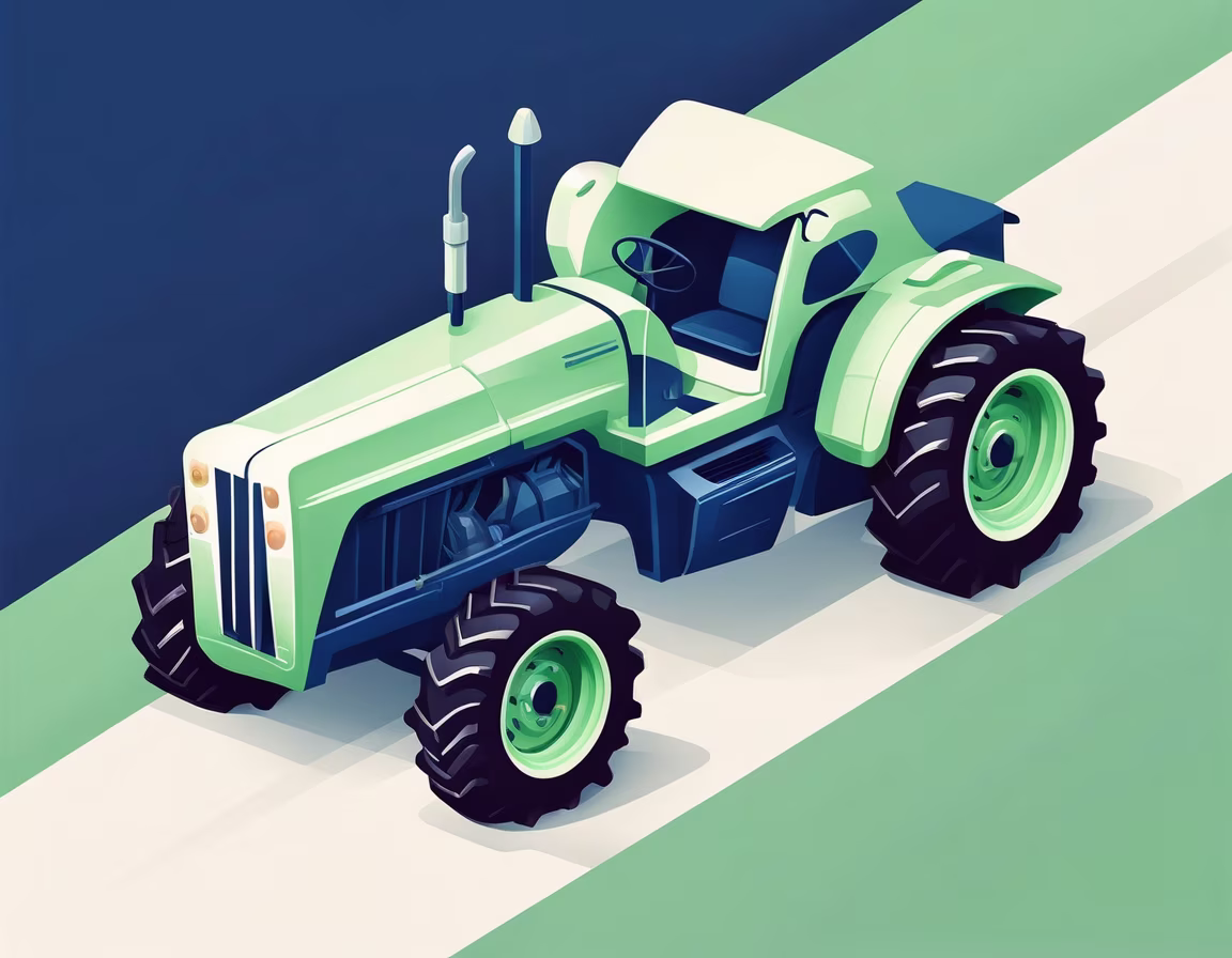 Prompt: Car tractor, vector illustration, white background, light green and dark blue,subtle gradients,minimalism,flat illustration,from behance, Dribbble,(overlook view),flat