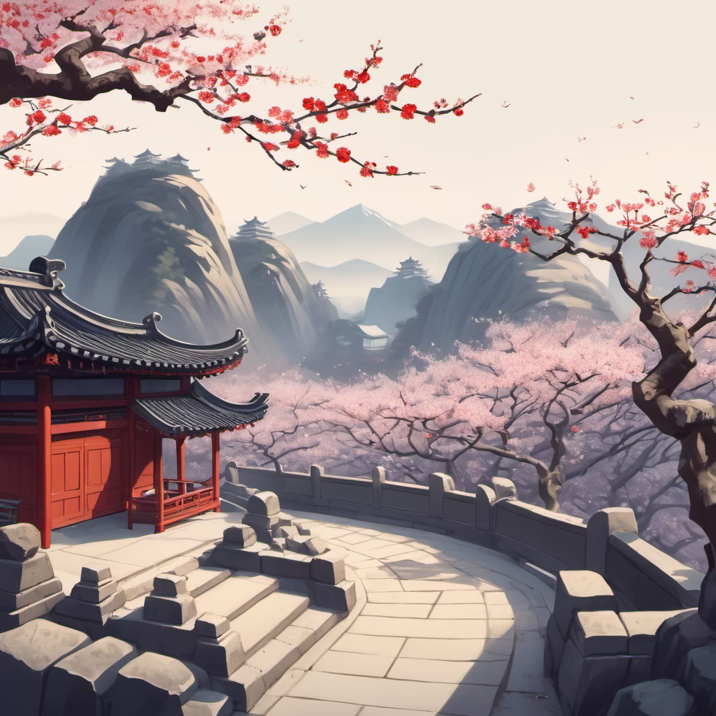 Prompt: Build gardens and carve inkstone springs widely, to keep tourists writing poems. The empty mountain is quiet without monkeys and cranes, and thousands of plum blossoms accompany my sleep.