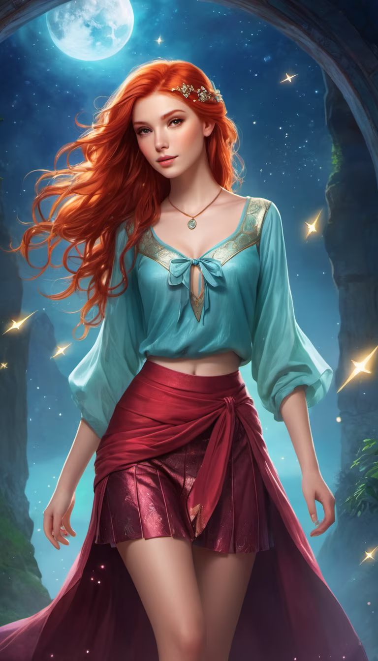 Prompt: beautiful full bodied models of several beautifully pictured red haired girl age 18 with bikini skirts pretty sexy