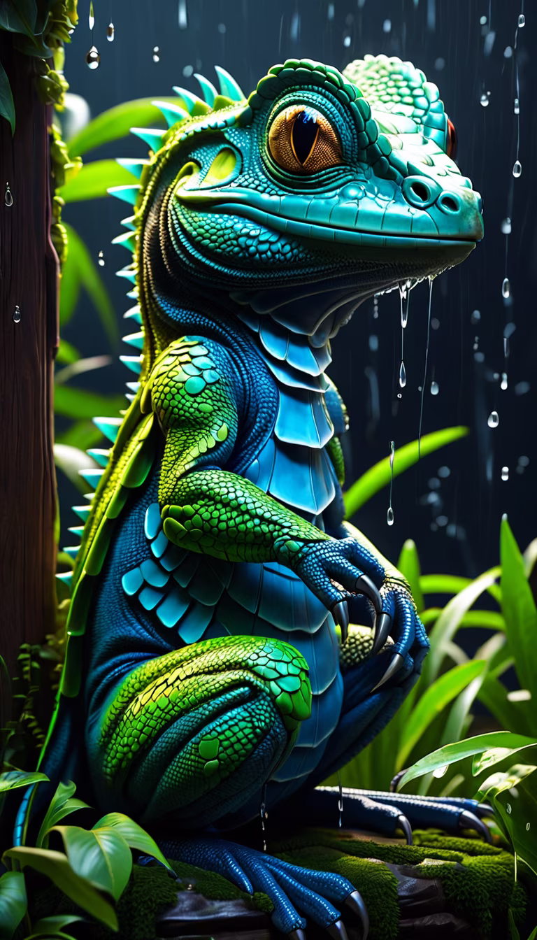 Prompt: iso 400, photorealistic, 8k,realistic, realism, photorealism, high contrast, photorealistic, 8k high definition detailed realistic, (best quality, masterpiece:1.2), photon mapping, radiosity, physically-based rendering, best quality, highly detailed, Digitally painted scene capturing whimsical creatures of the future, drenched in dark duotones, (The image is digitally painted with a high level of detail and a focus on lighting and textures. It is trending on artstation and has a cinematic quality)