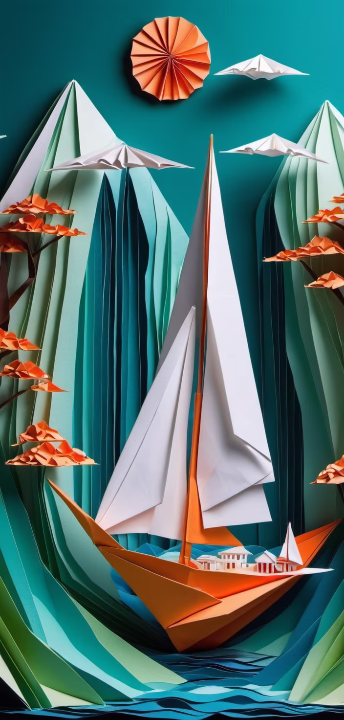 Prompt: magical kingdom of bridges over waterfalls with paint everywhere hd 32k 3d party sailboat wall art abstract intense surreal