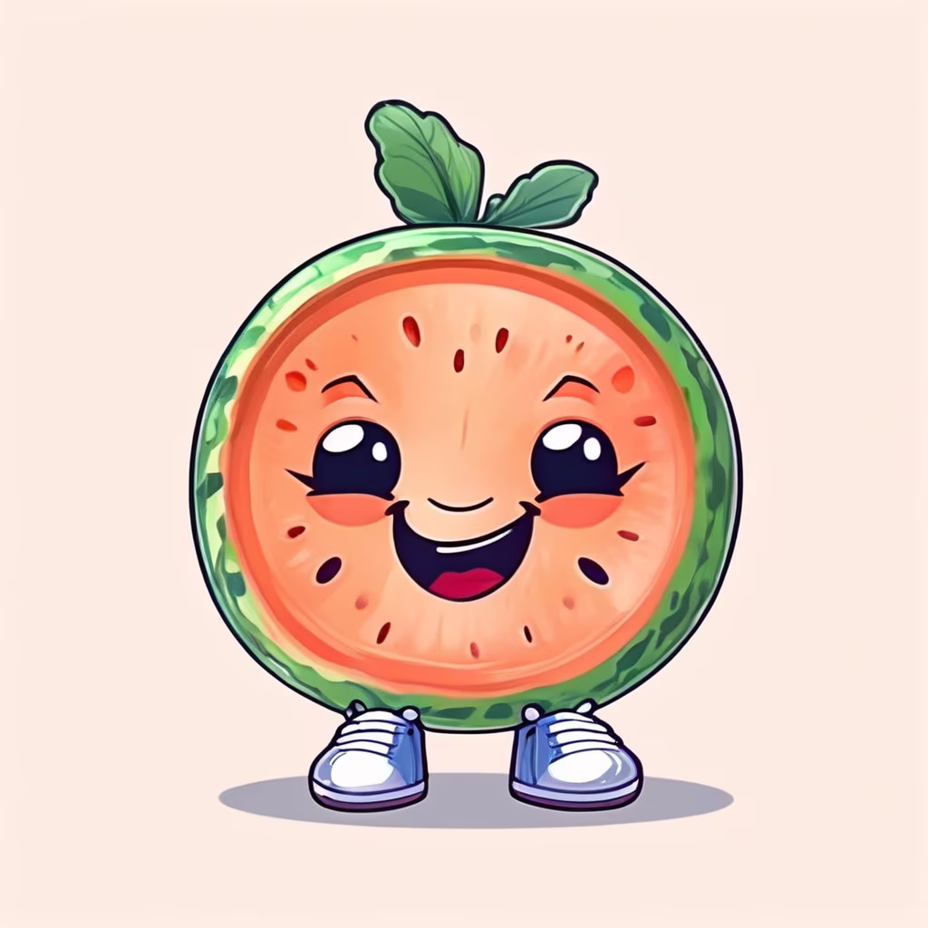 Prompt: (A lovable character of a watermelon face, sneakers), full body, adorable, charming, cute and quirky, white background, crisp drawing line, cartoon style