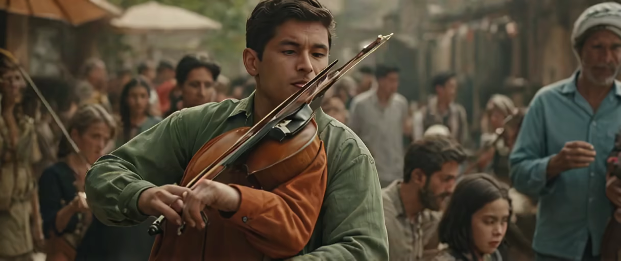Prompt: Traditional music performances from around the world. Wide visual, clean and fine image, rich in color and detail, layered, Hollywood cinematic style, greenish-orange tones, cinematic feel. Cinematic --ar 21:9 --q 5