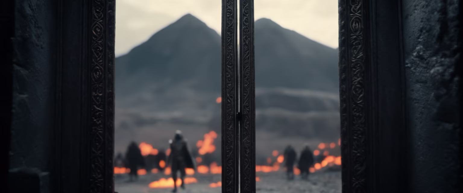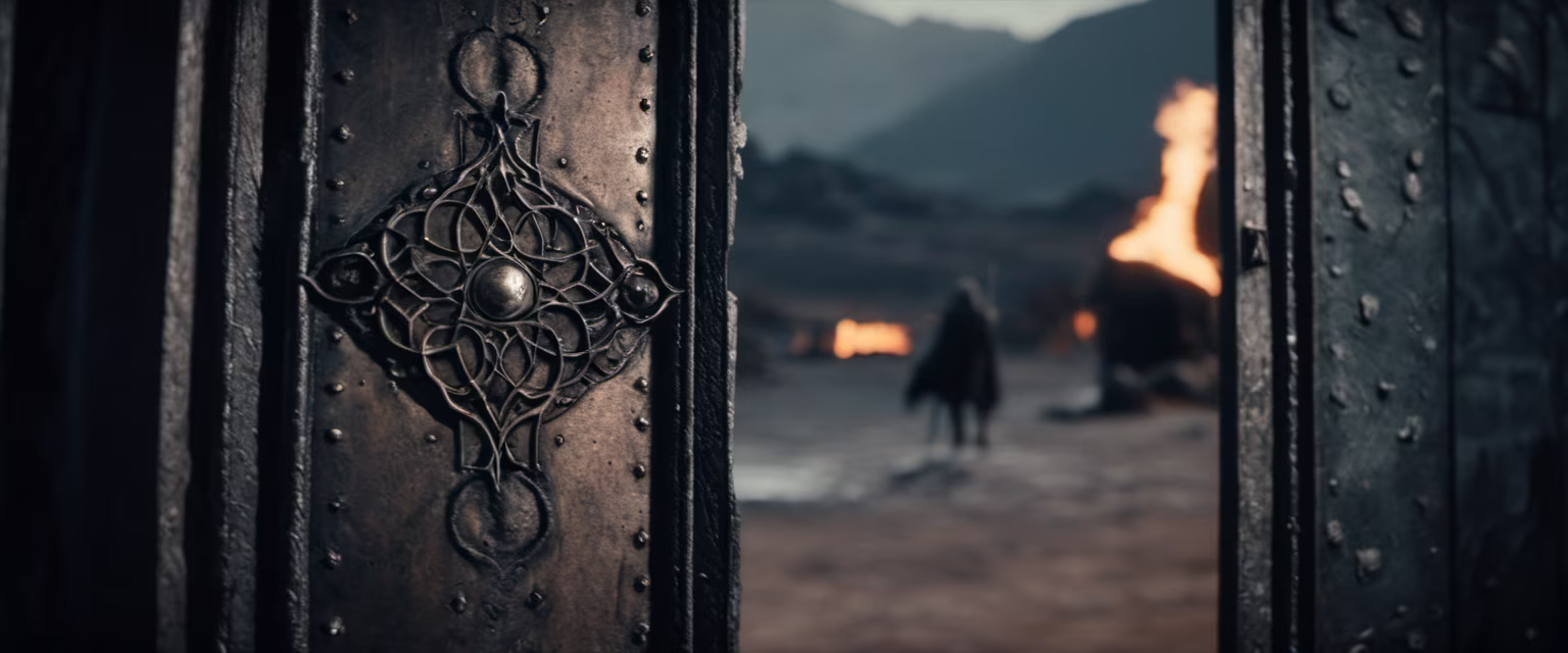 Prompt: Cinematic Opening shot of Epic Fantasy Movie, cinematic, color graded